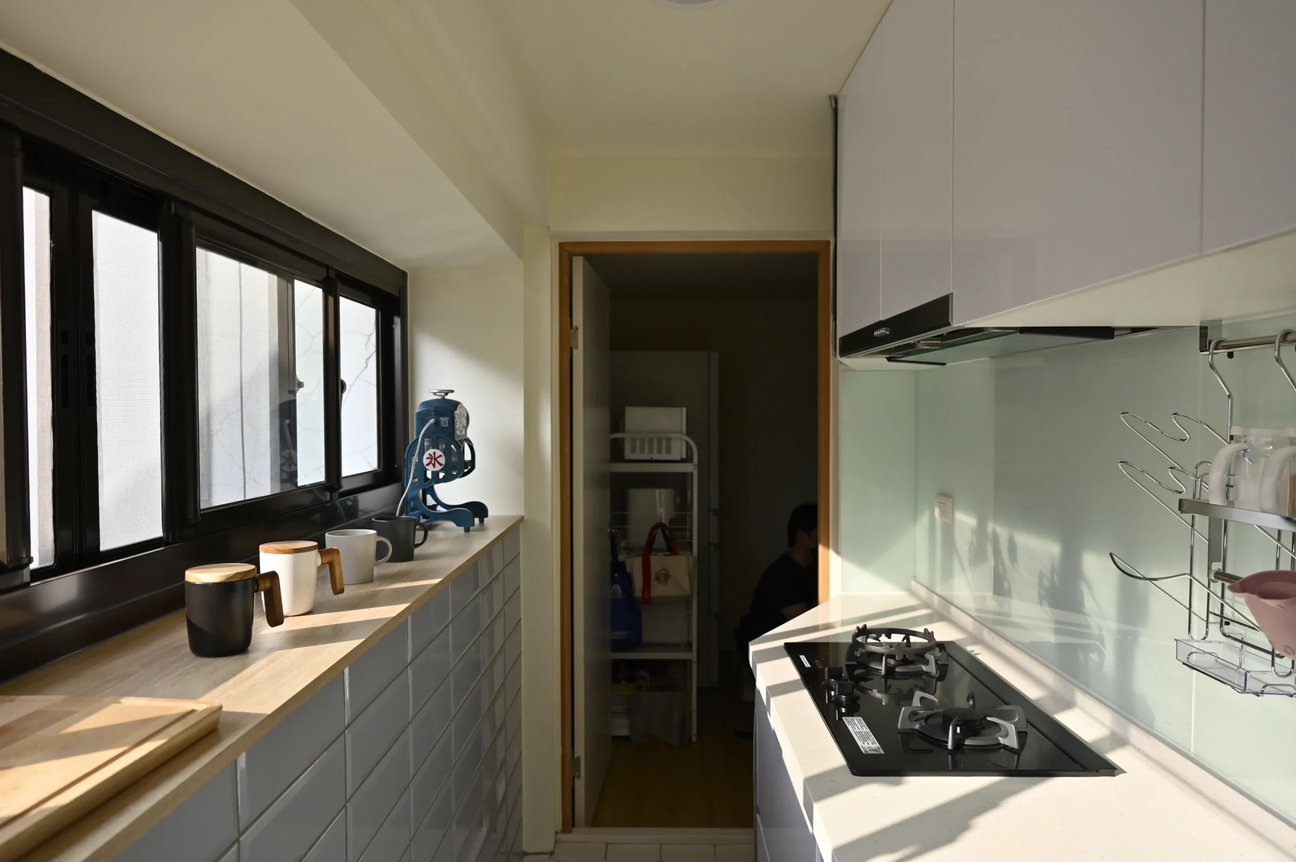 超過30餘載的樓中樓老屋,翻修後在台中市區內別有一番風味。 翻修內容 | 全室電線重拉,弱電規劃,浴室翻新,廚房翻新,全室氣密窗,大門更換加電子鎖,系統櫃規劃,地板翻新,木作工程 規劃理念 | 全室風格採無印風格,利用明亮及暖色調的系統及地板配色營造出溫暖耐看的視覺感,門口玄關地磚及廚房地磚規劃六角磚搭配出讓人耳目一新