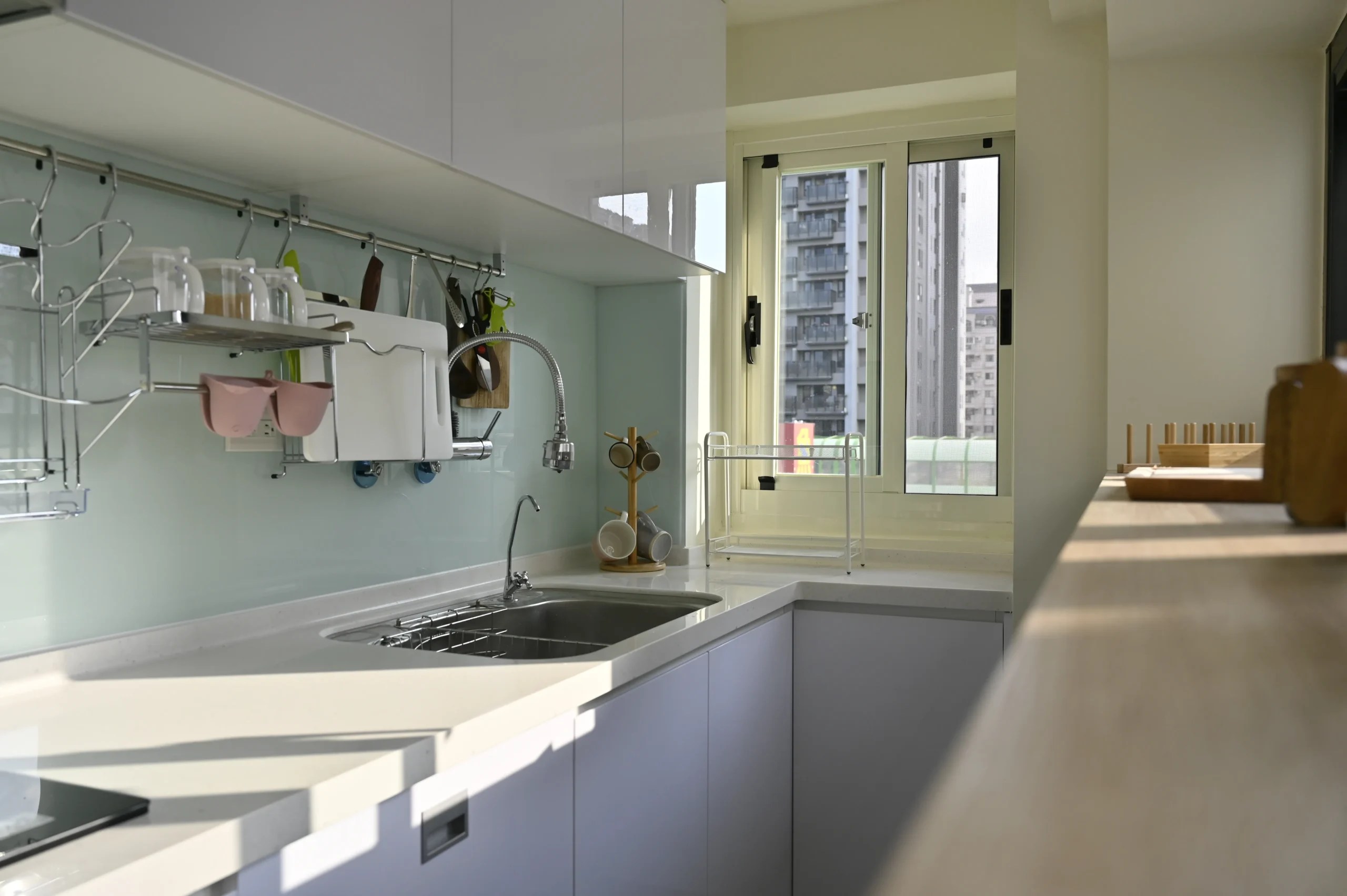 全室電線重拉,弱電規劃,浴室翻新,廚房翻新,全室氣密窗,大門更換加電子鎖,系統櫃規劃,地板翻新,木作工程